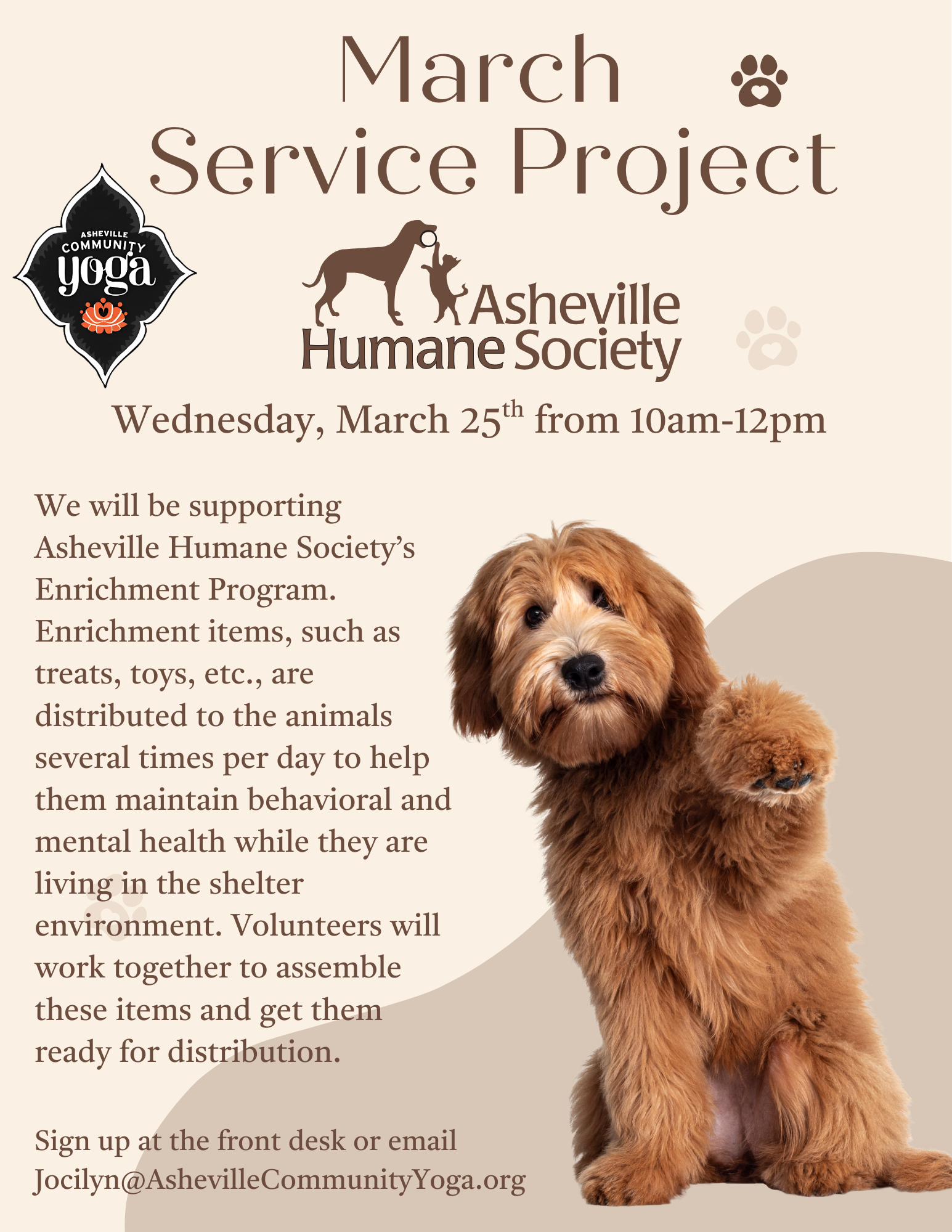 Join ACY on Wednesday, March 25th from 10am-12pm in supporting Asheville Humane Society’s Enrichment Program!