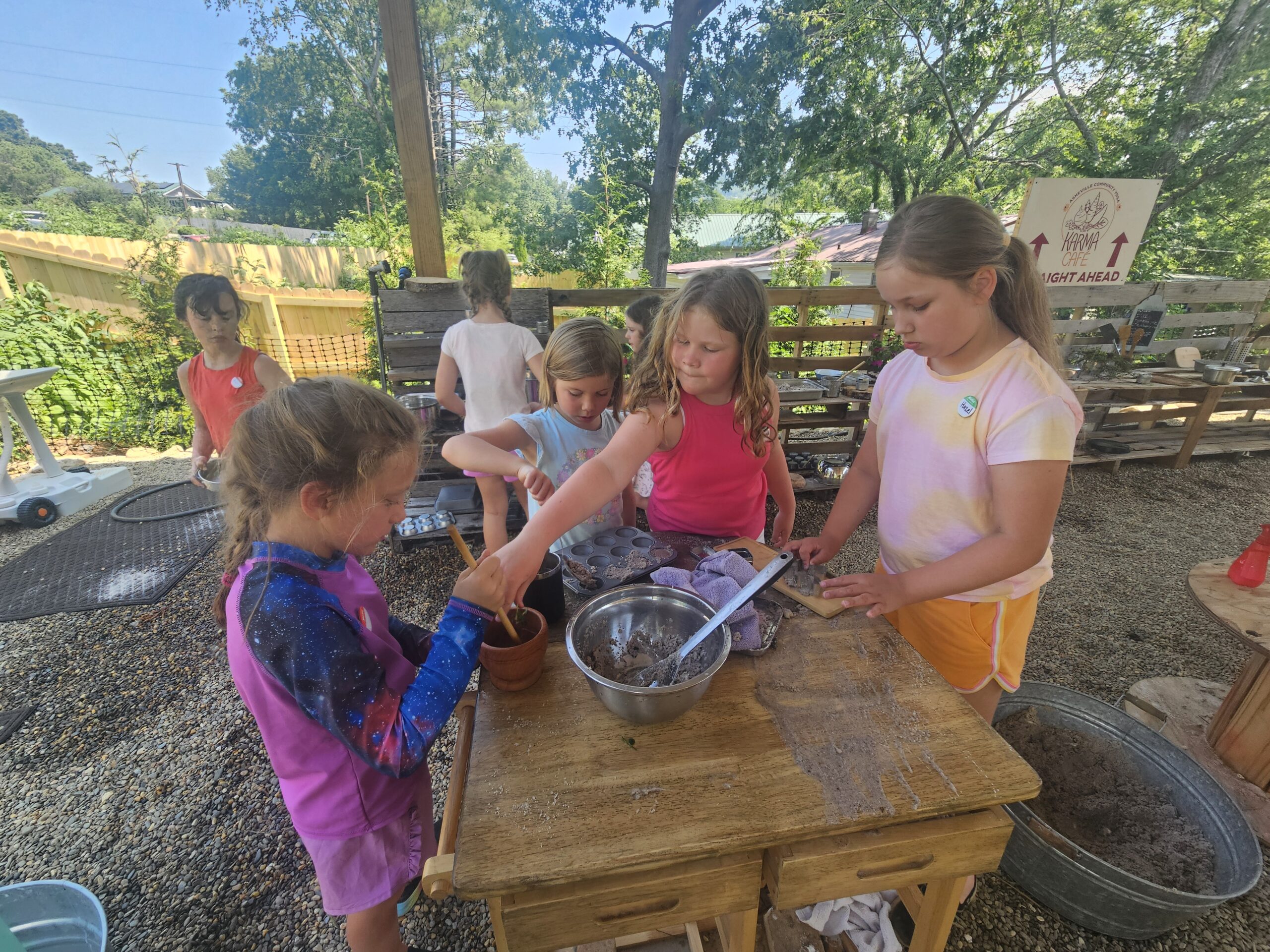 We will be utilizing our gorgeous courtyard out back, the covered deck, as well as the air-conditioned youth space. Our building and the grounds are inspected annually and we more than fulfill the standards for the Buncombe County codes for safety. Please be assured that children in the camp will be separate from practicing community members and the main building. Drop off and pick up will be held in the courtyard.
