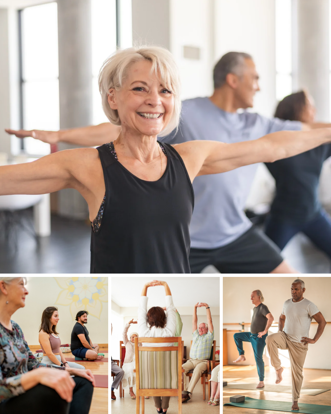 - Specific training for adapting yoga practices safely and effectively for older adults and middle aged adults living with similar conditions